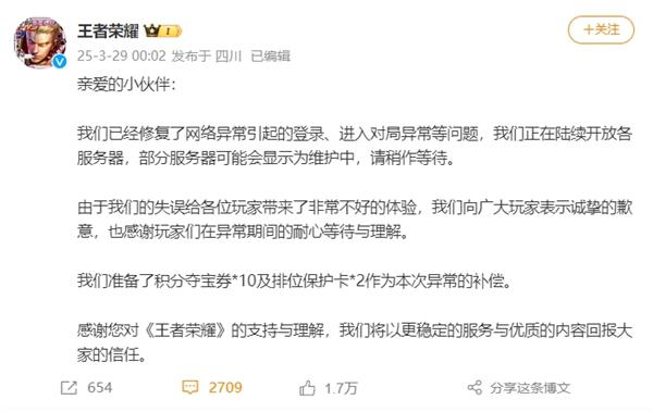 今天上午,王者荣耀官方微博宣布,他们已经修复了网络异常导致的登录、进入游戏异常等问题。所有服务器都在陆续开放,有些服务器可能会显示为维护。请稍等。