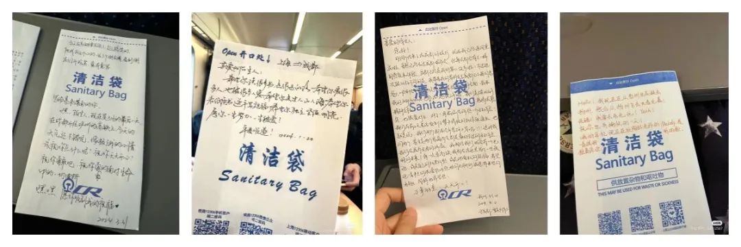 高速列车的清洁袋变成了“漂流瓶”,上面写着…