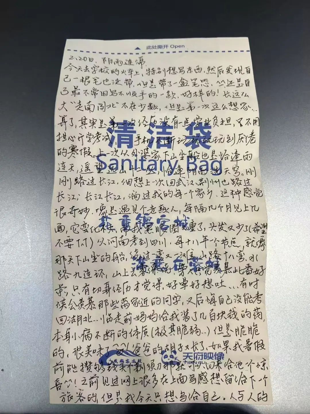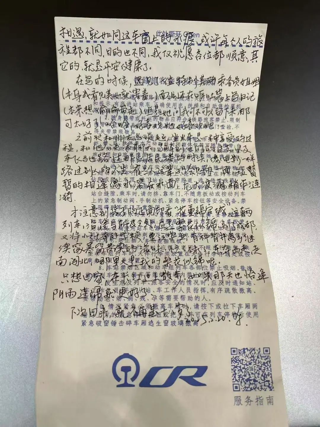 原来的标题:“高铁清洁袋变成了“漂流瓶”,上面写着…”