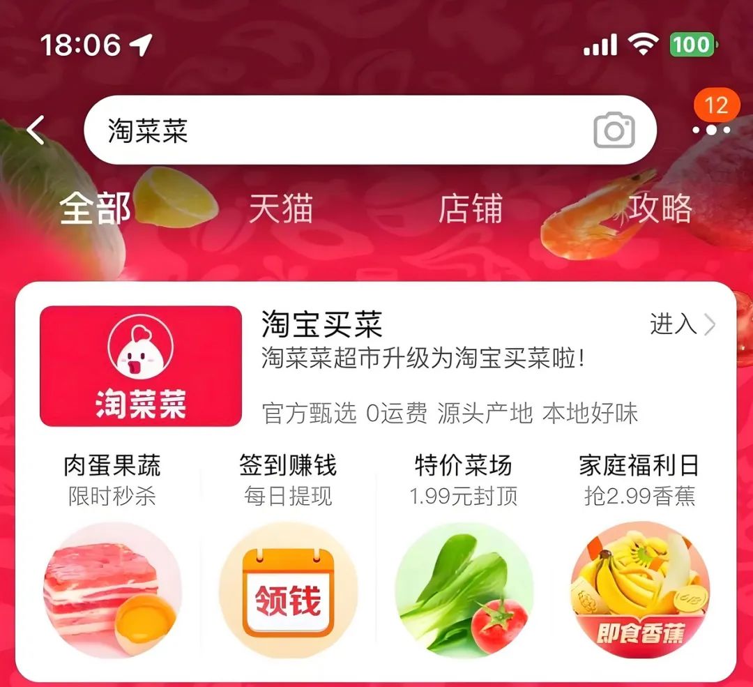 事实上,早在2023年5月,阿里就开始系统地调整社区团购业务的结构。首先,淘菜和淘鲜达并入淘宝购物,然后独立为淘鲜达打开入口。看似业务的精细化调整,其实是一种渐进式的减肥。