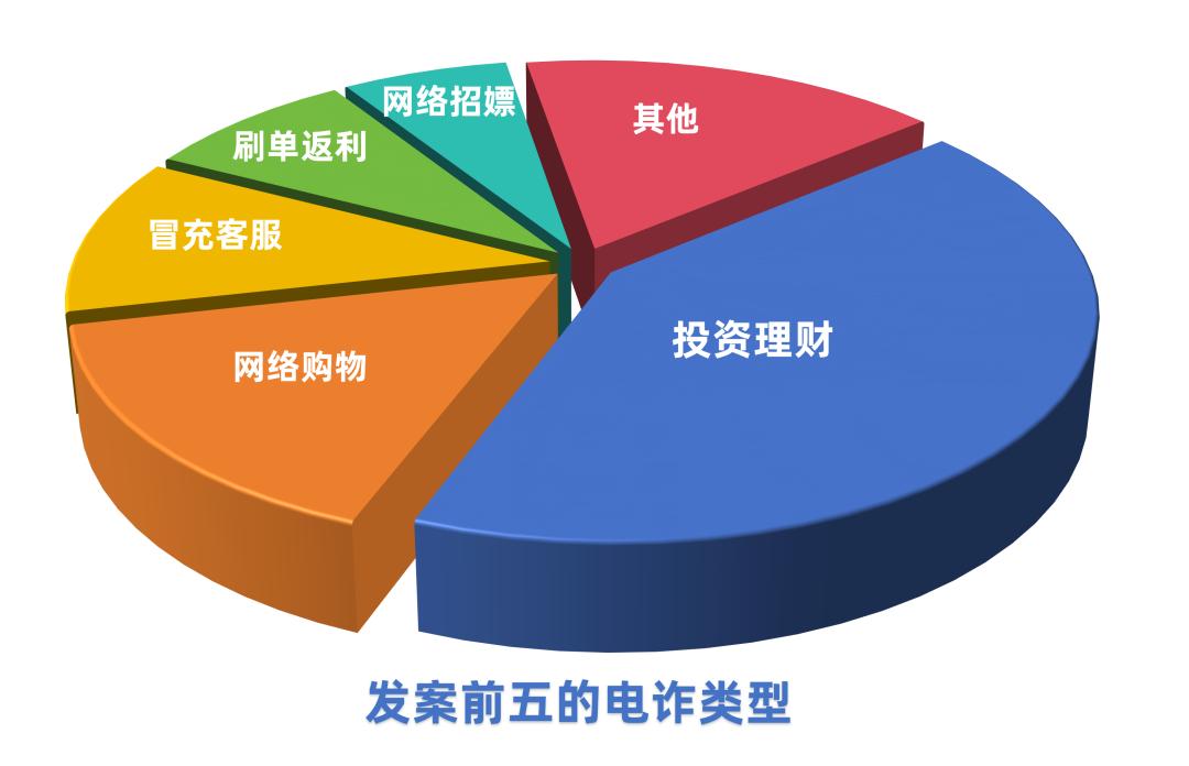 据统计,今年以来,以电信诈骗为代表的非接触性诈骗案件前五名分别是虚假投资理财、虚假网购、虚假平台客服、计费返利、虚假网络招聘。其中,虚假投资理财案件占40%以上,主要手段是以股票、期货、虚拟货币等投资利润为幌子,诱导安装虚假投资APP骗取财富。