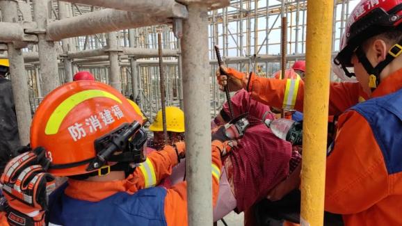 3月5日,在浙江省杭州市萧山区的一个建筑工地,一名工人在高空作业时不小心从2米高的脚手架上摔了下来,被竖起的钢筋从臀部直接插入体内。经消防救援人员紧张处理,钢筋成功分离,伤者被送往医院治疗。