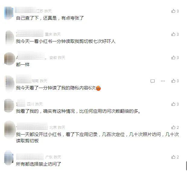最近,据很多小红书用户反映,小红书的后台持续高频获取用户定位信息,用户最多可在3天内浏览17000次。,包括定位、照片和视频、设备状态、时间表、剪贴板等。,即使在凌晨没有使用软件的时候,仍然有高频操作,这引起了隐私和安全的担忧。