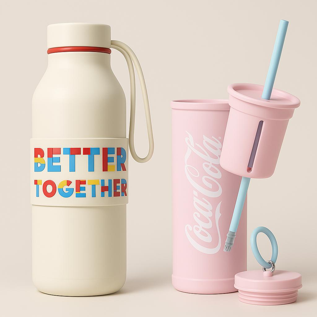 请清除两个杯子图片中的手,只保留杯子本身,确保杯子的细节清晰完整。为了设计电子商务海报,保持背景简单。杯子的光影和质感需要保留,以确保整个画面自然有吸引力。