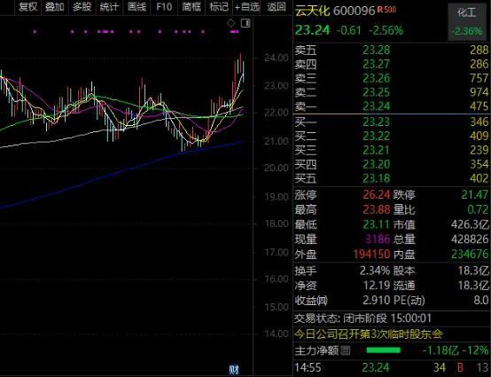 云天化本周股价逆势上涨,周涨幅超过5%,最新市值超过420亿元,市盈率仅为8倍。