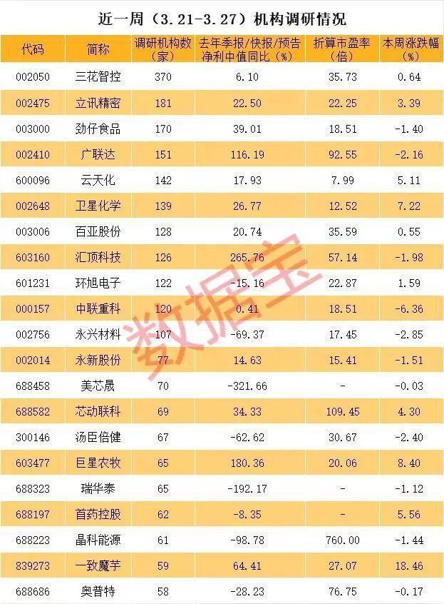 在过去的一周里,立讯精密、劲仔食品、广联达、云天化、卫星化学等个股也得到了100多家机构的调查。