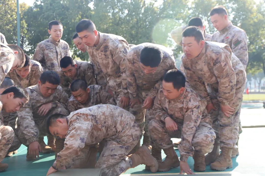在训练场上,“121”的密码是铿锵的。军事姿势练习时挺起胸膛;摆臂定位时发酸的手臂;正步抬腿时颤抖的小腿是新兵成长的见证。