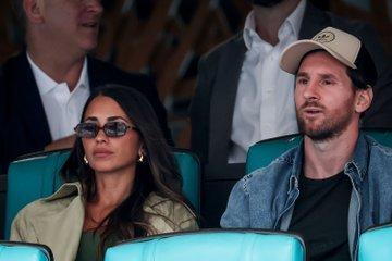 一位巨星级嘉宾来到这个战场,阿根廷球王梅西带着他的妻子和孩子来观看比赛,现在是美国职业足球大联盟迈阿密国际队长梅西,坐在场边欣赏这场大师赛的顶级比赛,沉浸在德约科维奇的网球艺术中。