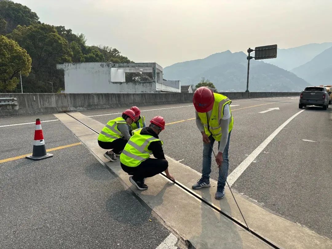 在S325洞庆线巨浦段,青田交通企业在组织维修人员清理公路边坡的同时,组织技术人员对桥桩、伸缩缝等关键部位进行专项整治,仔细记录检查中发现的问题。