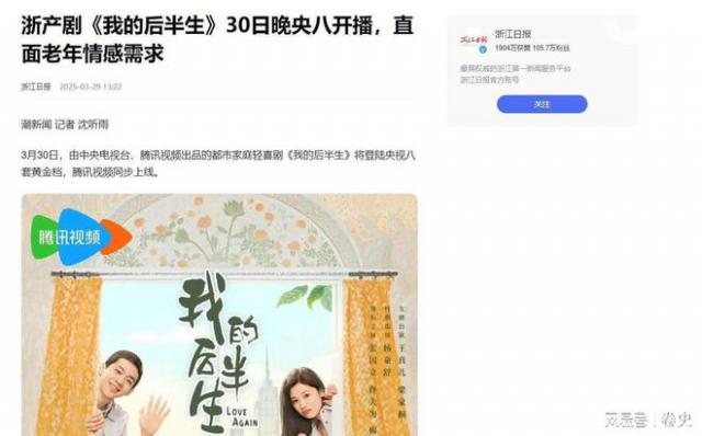浙江日报在 3 月 29 日宣传了《我的后半生》,这种排面不用说都知道有多厉害。