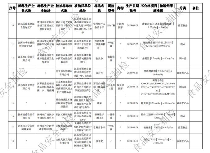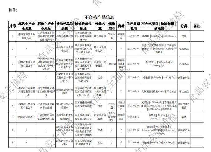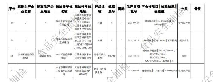 近日,江苏省市场监督管理局组织食品安全抽样,提取食用农产品、粮食加工产品、零食、饮料、蔬菜制品、饮料、豆制品、肉制品、油炸食品和坚果制品、食用油、油及其制品、淀粉及淀粉制品、冷冻食品、水果制品、调味料、速食食品、餐饮食品、饼干、罐头、糖制品、红薯和油炸食品、糖制品、鸡蛋制品、蜂产品、冷冻饮料、食用添加剂和烘焙咖啡制品等26种食品。其中,淀粉及淀粉制品、饮料、水果制品、蔬菜制品、饮料、食用农产品、零食、餐饮食品、调味料等9类食品22批样品不合格。具体通知如下: