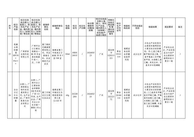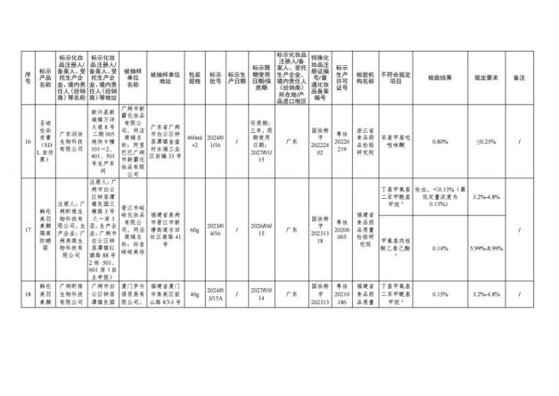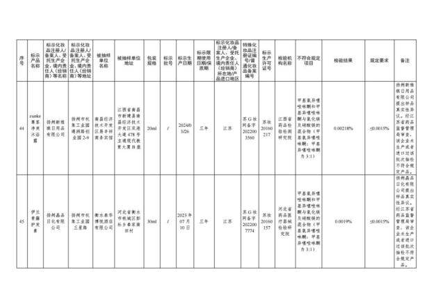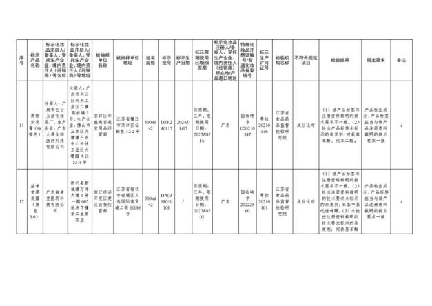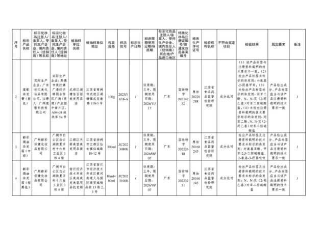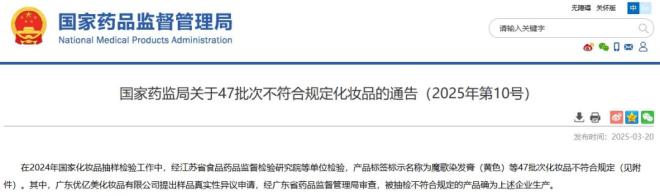 通知显示,经江苏美国食品药品监督检验研究院等单位检测,2024年国家化妆品抽样检验,商品标签名称为魔歌染发膏(黄色)等47批化妆品不符合要求。其中,广东亿美化妆品有限公司提出申请样品真实性异议,经广东省药品监督管理局审核,上述企业确实生产抽样不符合要求的产品。