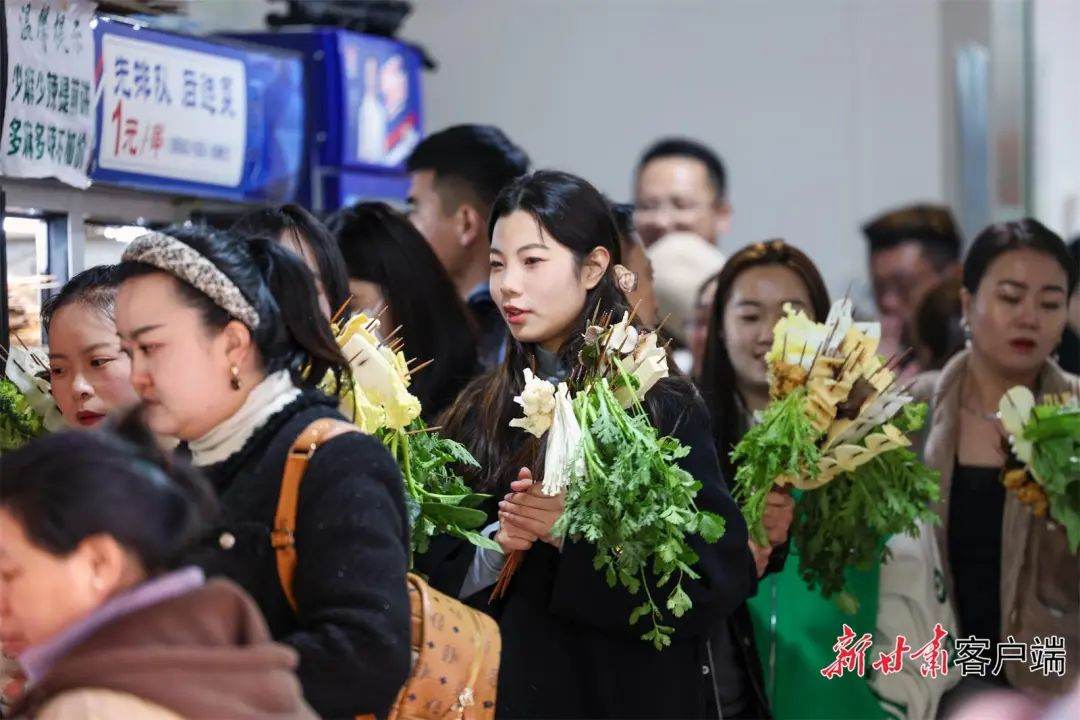 游客们手里拿着“捧花”排队加工。新甘肃日报记者 冯乐凯