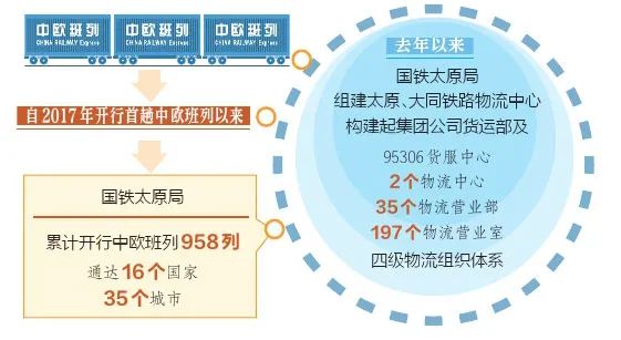 “自2017年首列中欧列车开通以来,国家铁路太原局共开通了958列中欧列车,达到16个国家和35个城市。”国家铁路太原局货运部主任田元说:“中欧列车已成为山西省不沿海、不沿海开放的重要平台。”