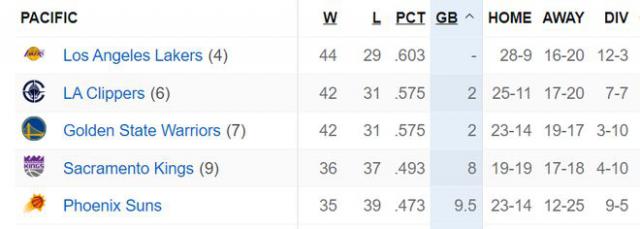 然而,得益于湖人本赛季到目前为止对阵西部球队的出色表现,如果出现同样的战绩,他们将处于更有利的位置,在从西部第二名到第八名的激烈排名竞争中运用决胜规则。