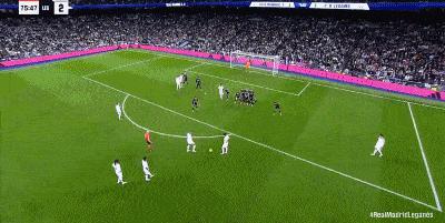 然而,皇马的防线随后开始“抢戏”。第一 33 几分钟,莱加内斯反击,雷区里倒三角传中,迭戈。 - 加西亚跟进抢点破门,1-1。在这次失球过程中,皇马有一个。 6 名牌防守球员在禁区内,但是无法阻止对手。 4 个人。
