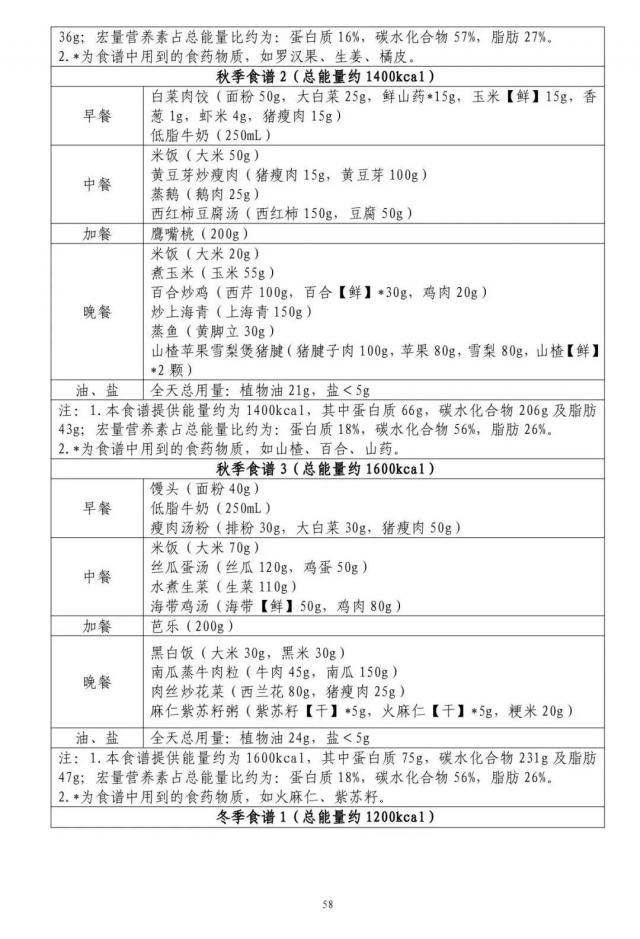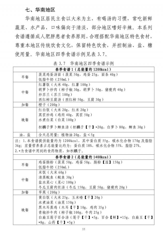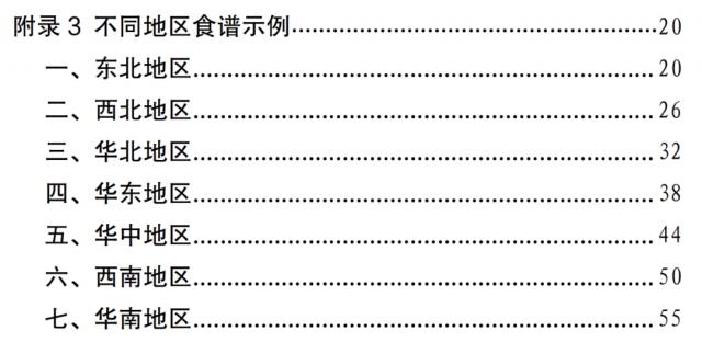 这种食谱在全国不同地区都有详细的食谱示例,并且注明了食谱的“总能量”。