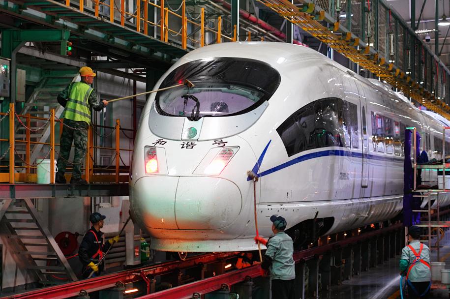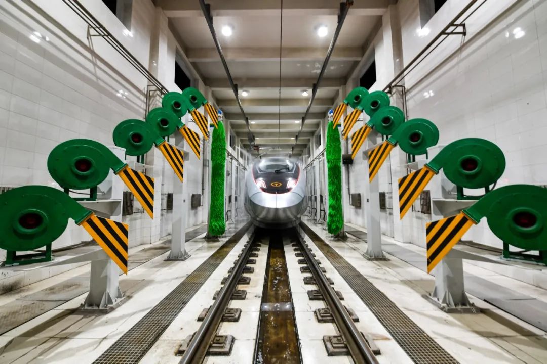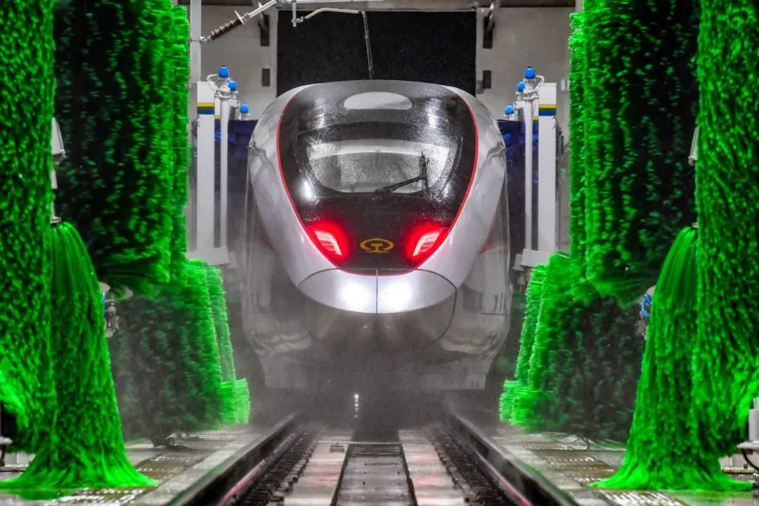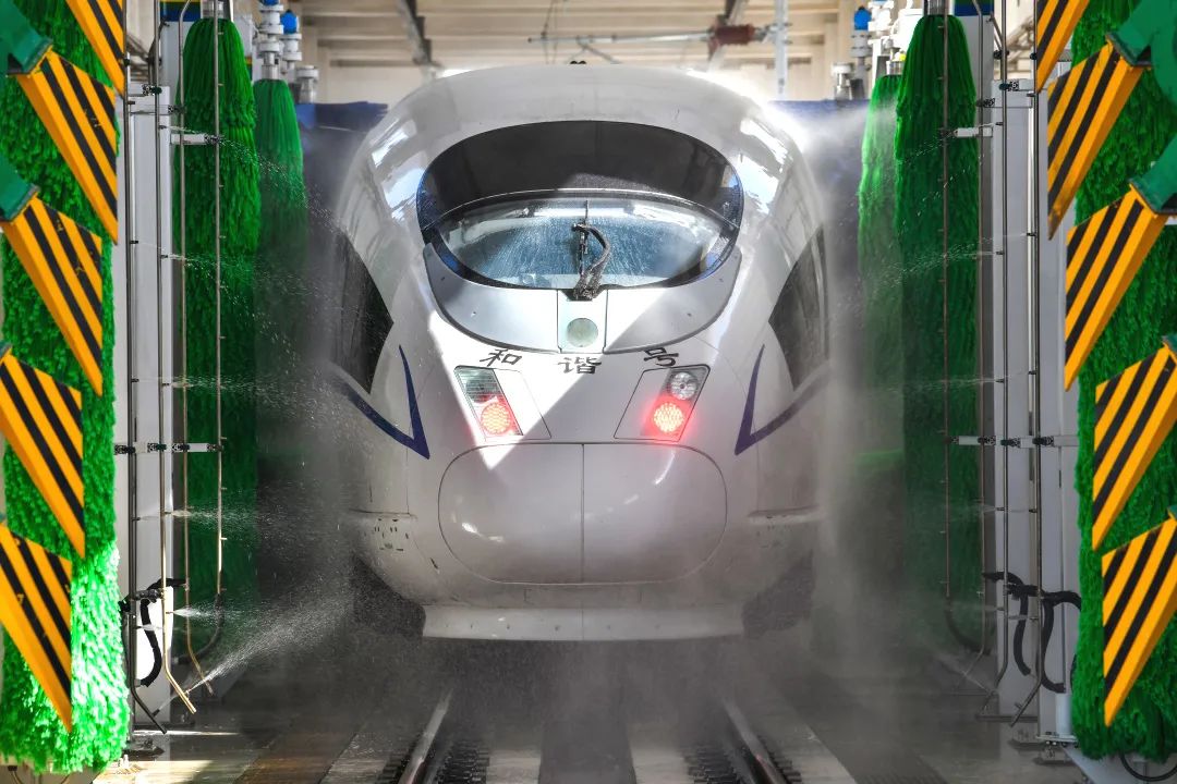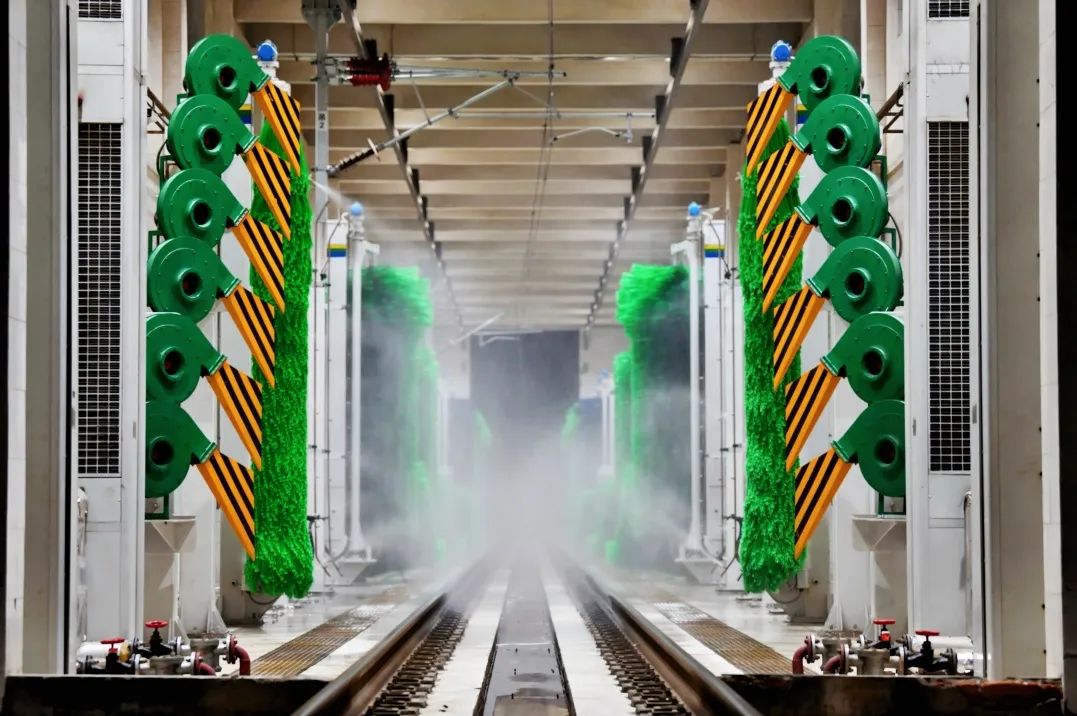 春季,沈阳动车段平均每天清洗50组动车列车,根据维修周期安排“动车洗澡”。如果特殊天气导致车身脏污,铁路工作人员会根据实际情况增加清洗工作。