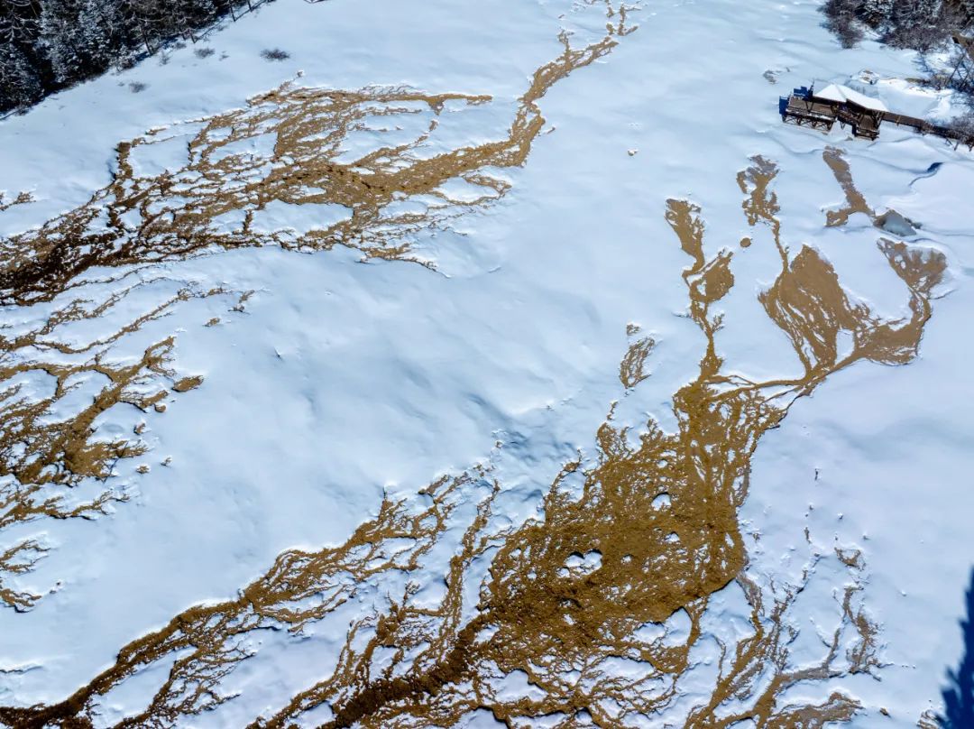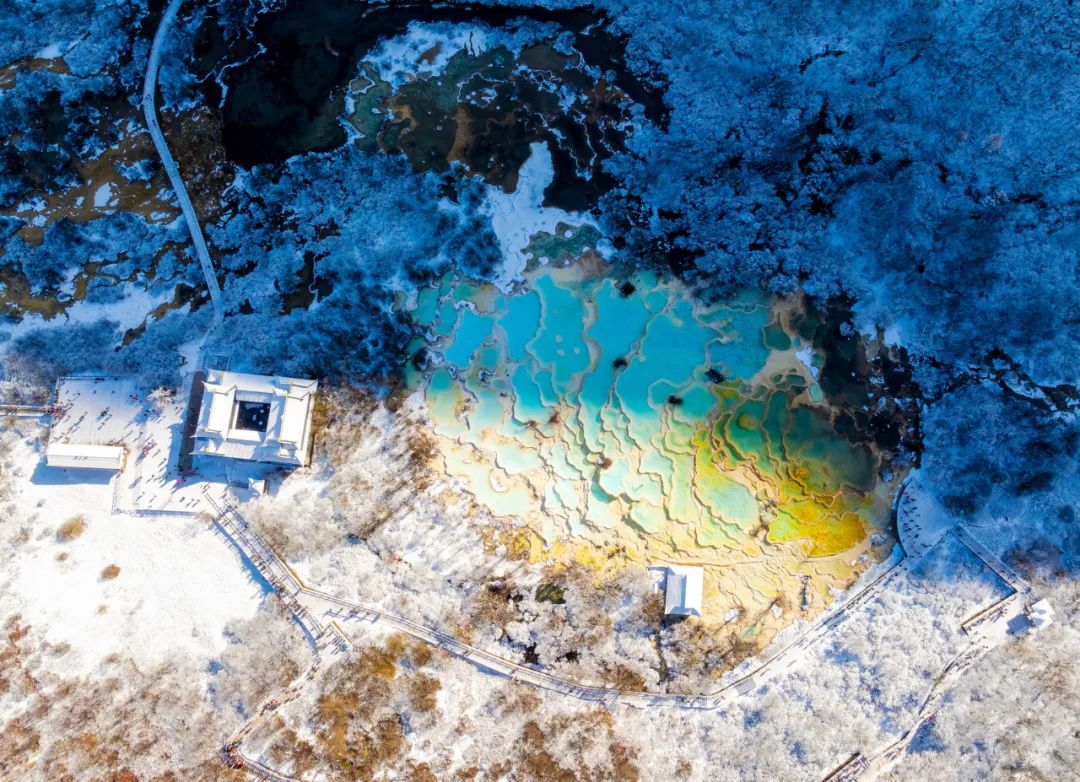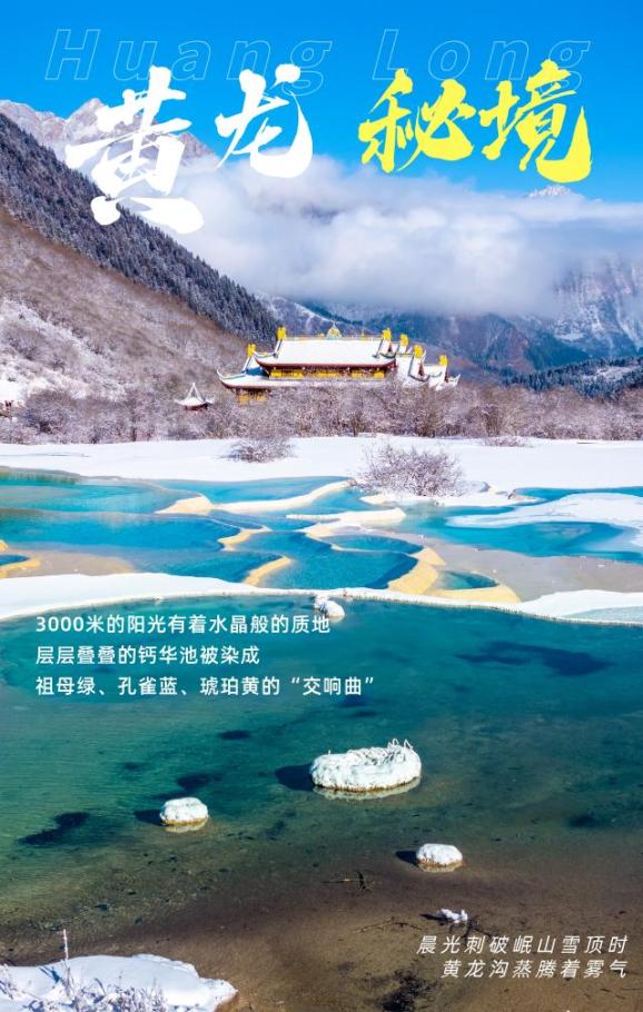 浣山之巅,雪水潺潺,黄龙在晨光中醒来。