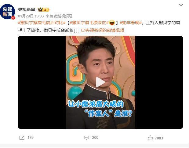今年春晚“撒贝宁眉毛”也是直冲热搜,很多网友称他为蜡笔小新,而他的这个形象也惹得大家嘎嘎乐。