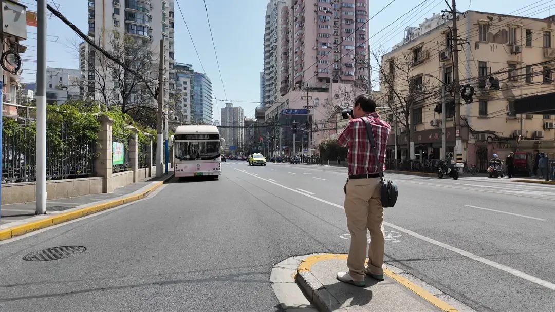 他经常看到游客举起手机在南京西路、吴江路等繁华道路上拍照。