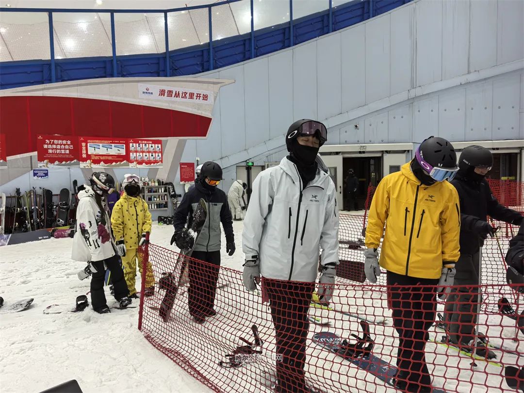 采访当天,滑雪场的休息室里挤满了人。中国滑雪指导员黑龙江省职业鉴定(滑雪单板)考试在这里举行,198名滑雪爱好者正在等待考试。来自沈阳的李阳是一个漂亮的小姐姐。她说她参加考试是为了测试她的滑雪水平。“滑雪已经六七年了。我经常和朋友一起来哈尔滨的这个室内滑雪场。室内滑雪不会有大风,非常适合女生。滑倒后,我们去楼上的商场‘逛街’。这里遇到了许多志趣相投的雪友,特别好。”