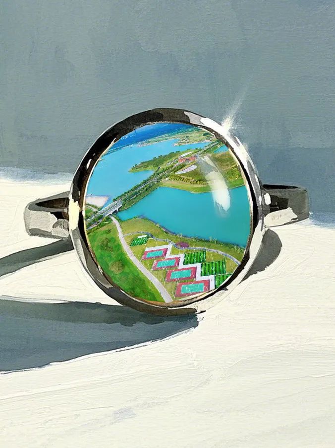 绿金湖的风景多样,湖边的体育公园就像嵌入晶石的方形晶体。这是一种色彩鲜艳的电气石,适合搭配完美风格的服装。(拍摄 陈艺星)