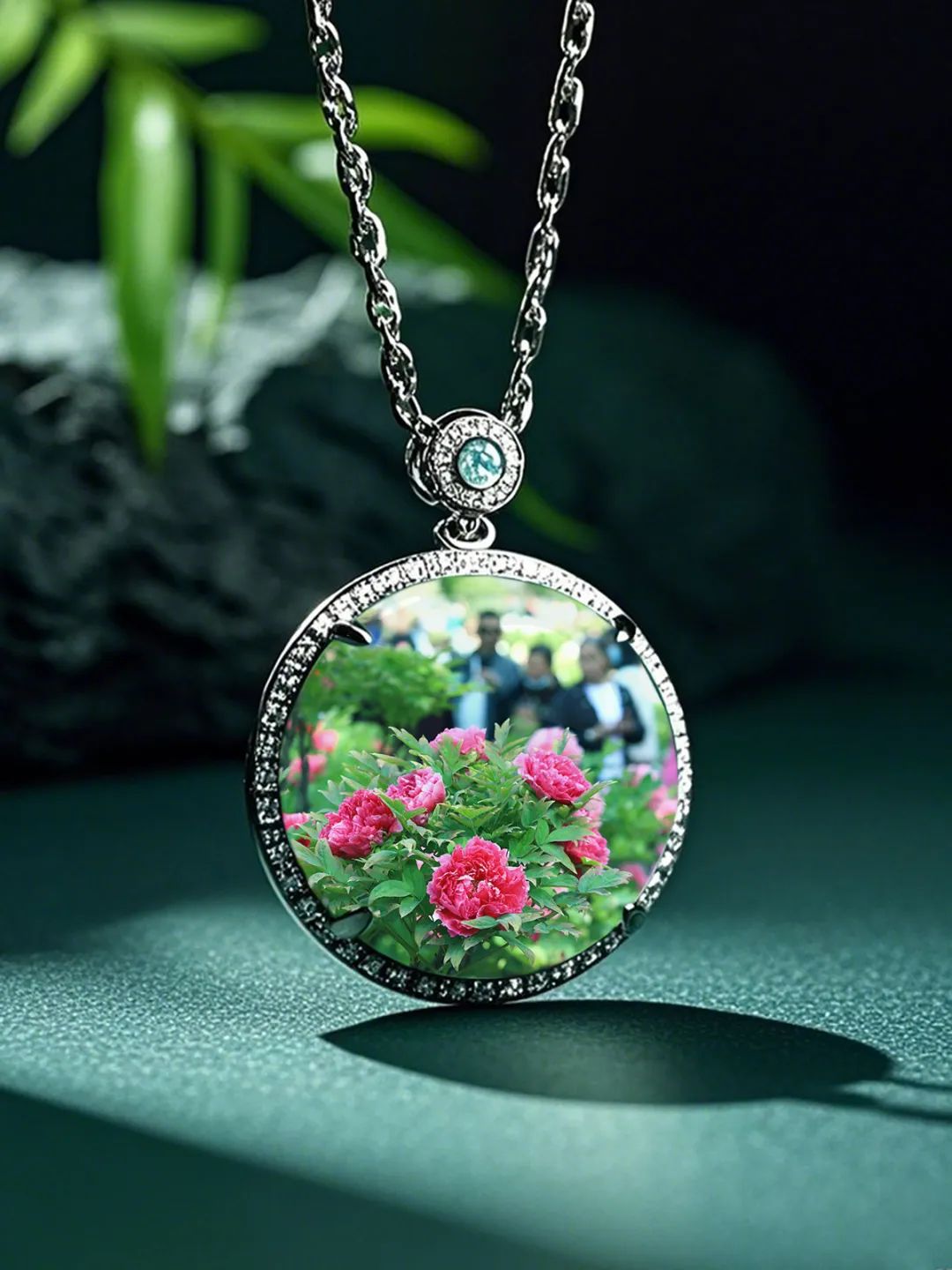 相山公园的牡丹园,鲜花盛开,芬芳宜人。这是一件嵌有红宝石的橄榄石,适合搭配高档面料的旗袍。(拍摄 万善朝)
