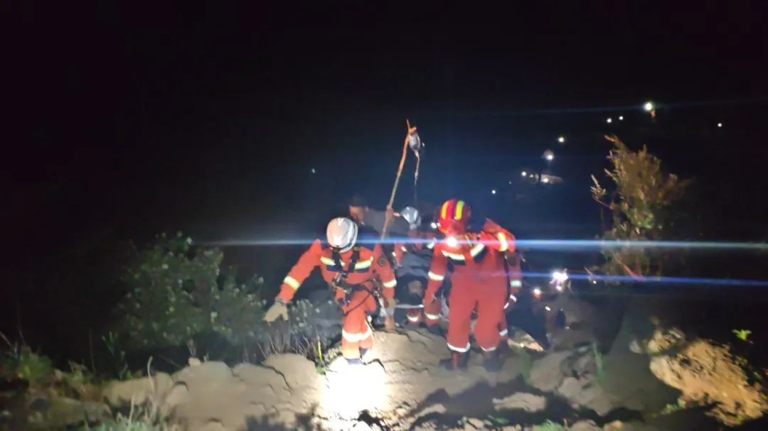 消防队员徒步携带到洞窟