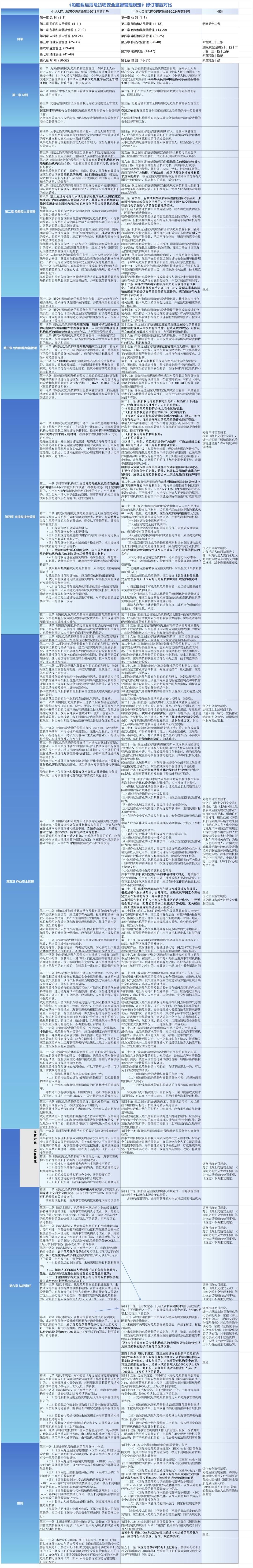 《船舶运输危险货物安全监督管理条例》(交通运输部令2024年第14号,以下简称《条例》)自2025年3月1日起实施。2018年7月31日,交通运输部令2018年第11号发布的《船舶运输危险货物安全监督管理条例》同时废止。六年后,新法宝升级了哪些地方?