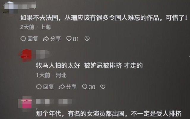 38年前,演员丛珊离开法国,网友透露是被迫无奈,过得不好又回来了。