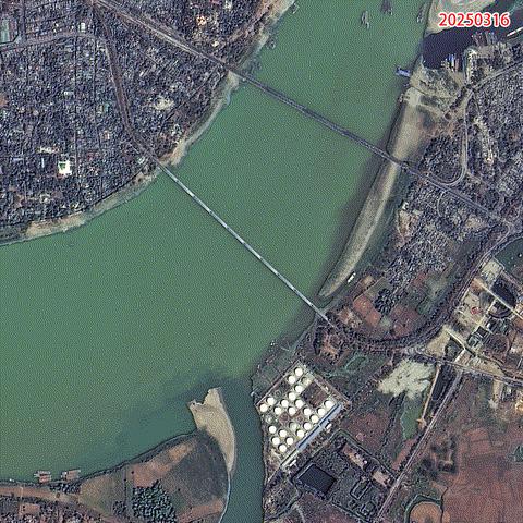 缅甸地震灾前后光学卫星图像(灾前高分1号) 03 卫星 2025 年 3 月 16 日收集,灾后:资源一号 02D 卫星 2025 年 3 月 29 日采集)