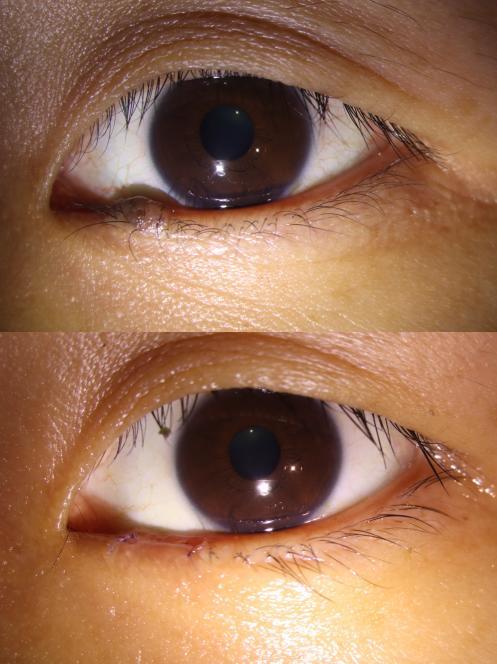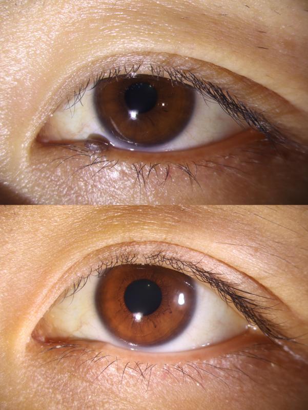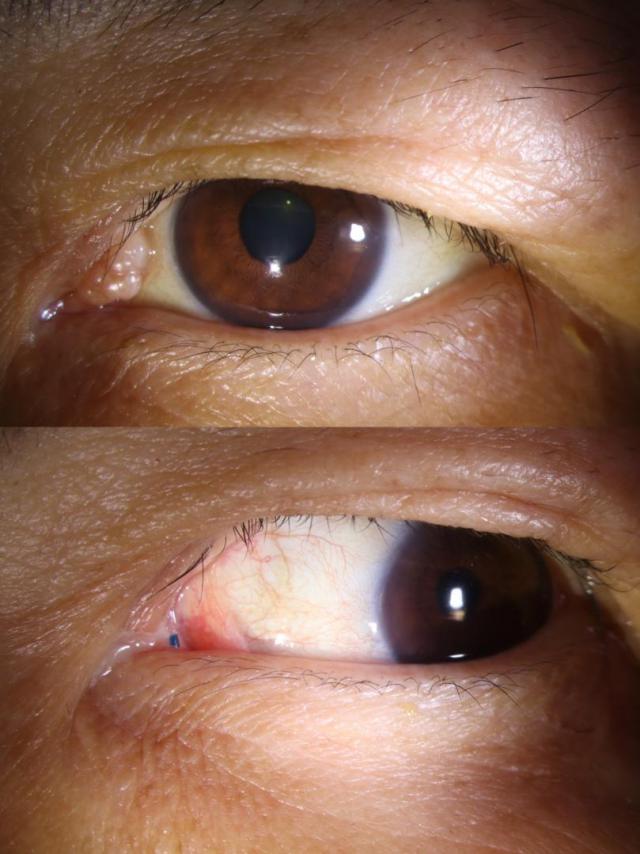手术后2个月,阿美右泪点旁的粘膜已经完全修复,回到医院取出人工泪管。