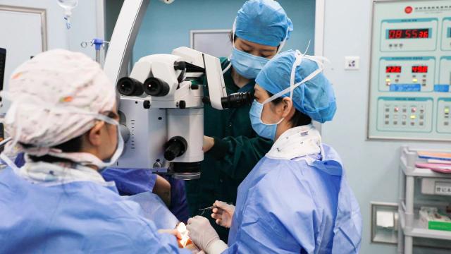 "眼部手术还是有点紧张,好在医生们不断地安慰我放松,否则我的牙关就会咬碎!"