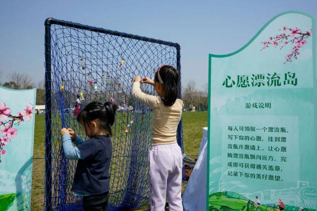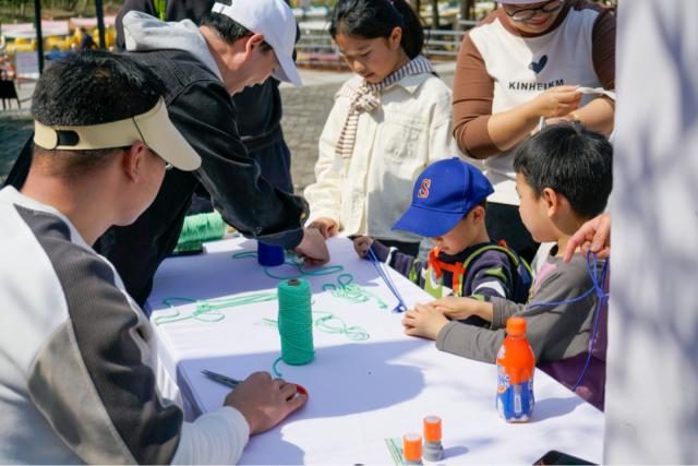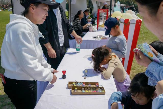 孩子们在亲子互动区玩耍,笑声不断。现场沉浸在欢乐的海洋中,就像一幅生动的春天画轴。