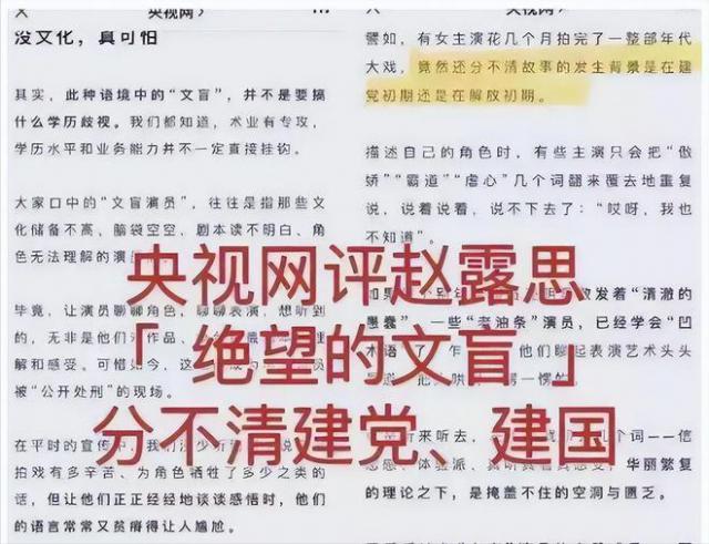 由于这个原则错误,赵露思也被央视批评为“绝望的文盲”。