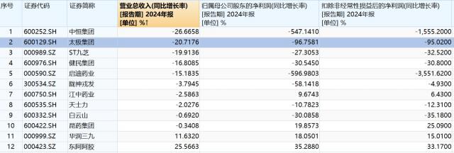 到目前为止,已经发布了 2024 年报中医药公司中,太极集团营收增速排名倒数第二,归母净利润增速排名倒数第四,扣除后净利润增速排名倒数第三。
