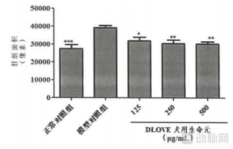 经过样品处理后,斑马鱼肝的面积与模型对照组比较。