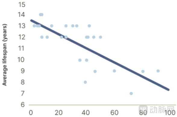犬的体重可能与平均寿命有关。