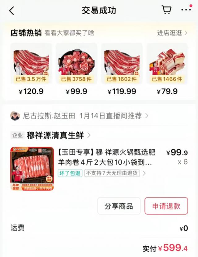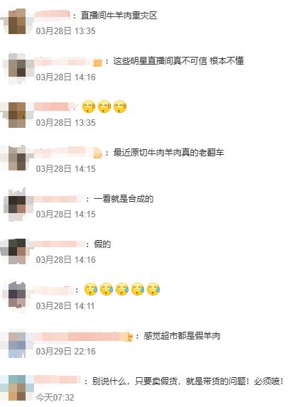 不少网友表示,直播间出售的牛羊肉卷经常翻车。