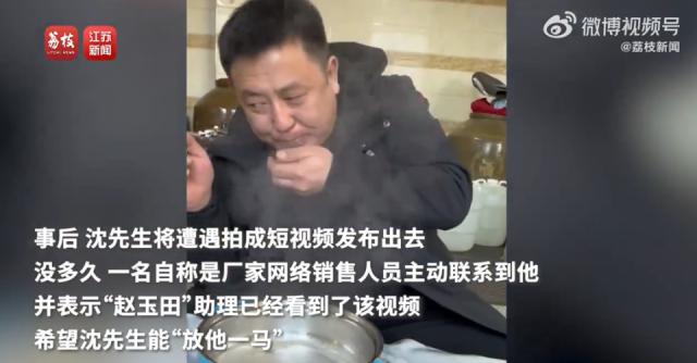 据媒体报道,沈先生将被拍成短视频发布后,一些自称是厂商的网络销售人员主动找他,并表示“赵玉田”助手已经看到了这个视频,希望沈先生能“放他一马”,并说兄弟在这里的钱,请删除视频。