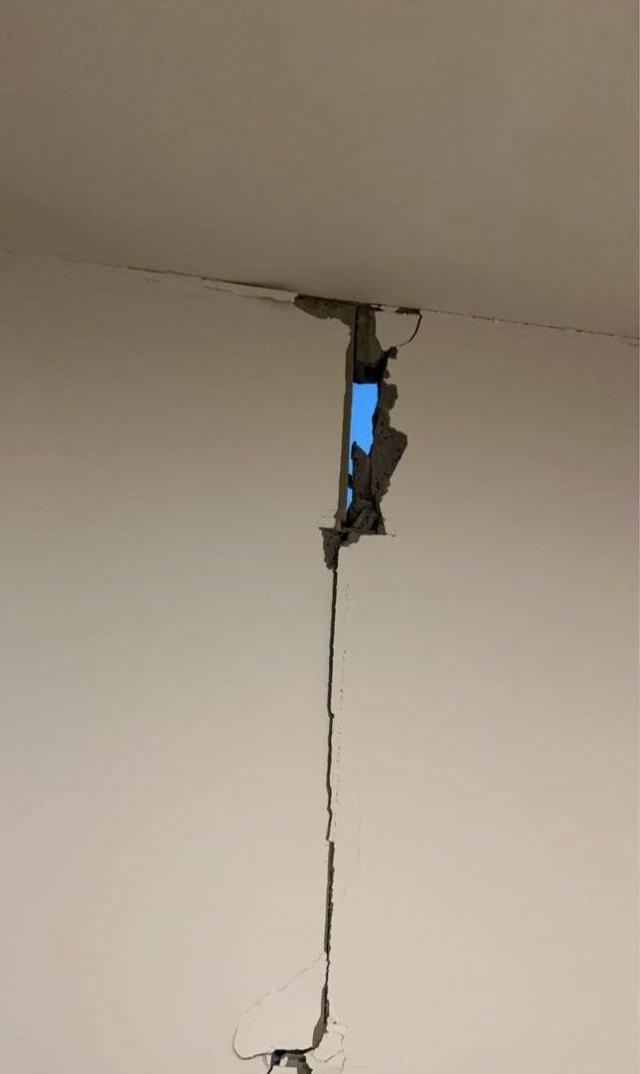 坐电梯上楼,眼前的景象让杜梅既震惊又生气。走廊里的墙壁和天花板脱落,墙壁开裂,水管爆裂,有些缝隙甚至可以看到楼外的天空。“我可能住在这栋质量最差的建筑里。我朋友住的建筑损坏没那么严重。”
