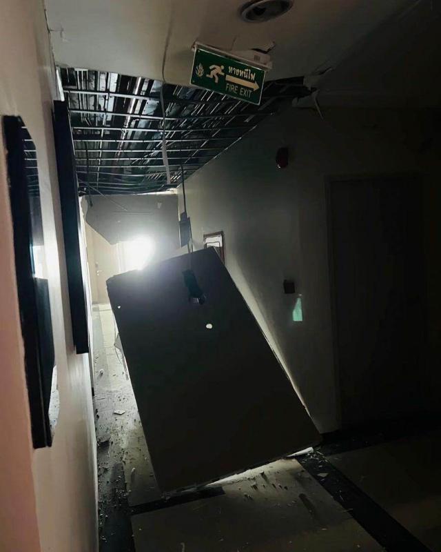 当地时间曼谷 28 日中午 1 点 20 大概,杜梅在睡梦中被一声巨大的噪音吵醒了。她以为有人敲门,睁开眼睛,发现窗外有很多水,以为楼上的水管爆了。刚躺下准备睡觉的时候,看到房间四面墙开始脱落,然后感觉强烈的晃动。