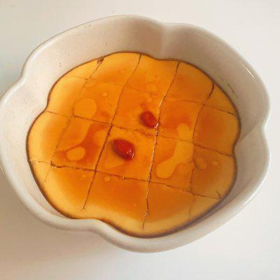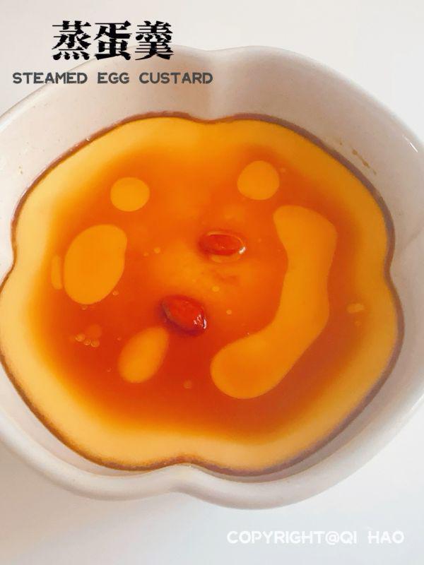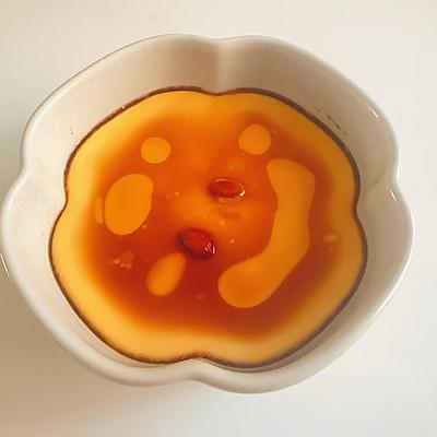 7、嫩蛋羹做好了,倒入酱油和香油,可以加入枸杞或葱花装饰。。