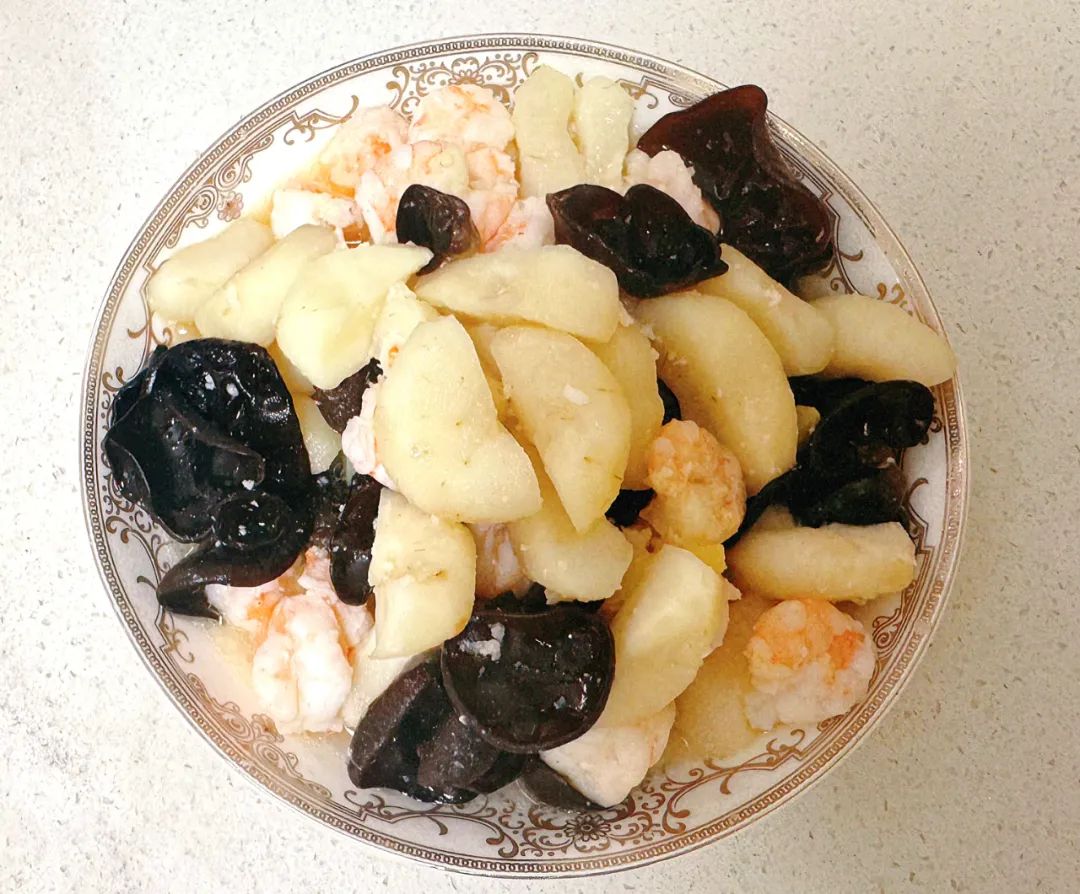 然后,将菱角和木耳放入锅中,大火翻炒2-3分钟。菱角和木耳相当耐炒,大火可以快速锁定食材的水分,使口感始终酥脆。然后倒入之前炒好的虾仁,继续翻炒,让食材充分融合。在调味阶段,撒上适当的盐,简单调整一下就够好吃了。如果你想通过上一段楼梯来品尝这道菜,你不妨加入一些鸡汁来提高新鲜度,然后勾一个薄芡,味道会更丰富。