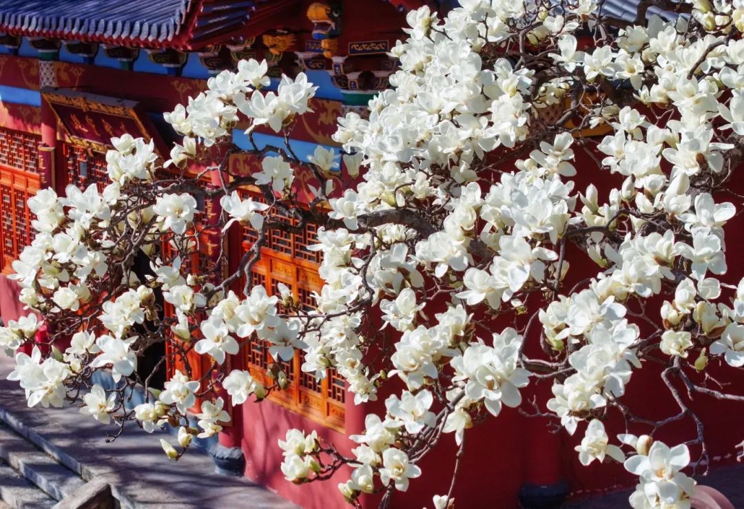 在延福观,有四棵古玉兰树,是中国最大的古玉兰群落。最大的一棵玉兰树已经有几千年的历史了,被称为“玉兰花王”,也被称为“玉兰神仙”。每一年三月,春风温暖,阳光明媚,正是玉兰花盛开的季节。山脚下既能闻到玉兰沁人心脾的清雅香味。等到半山,更能看见盛开的白玉兰,像瑞雪一样堆满枝头。一直到现在,千朵万朵,尽情绽放,花团锦簇,与蓝天白云争秀,与黛瓦红墙相映成趣。此时,通常游客如织,赞叹不已,惊呼不绝,回味无穷。更加远道而来的摄影师,从镜头中定格玉兰的万般柔美与万千花姿。