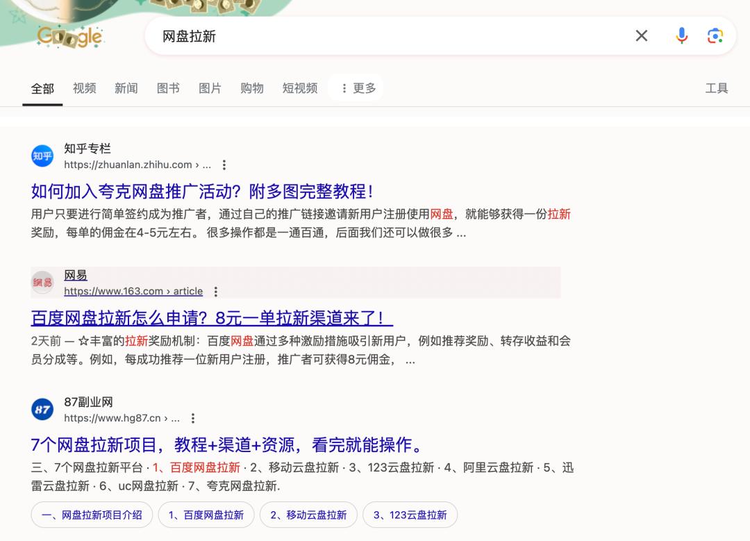 首先,在网上随便搜索一下“ 网盘拉新 ",不要有太多类似的推广方式。