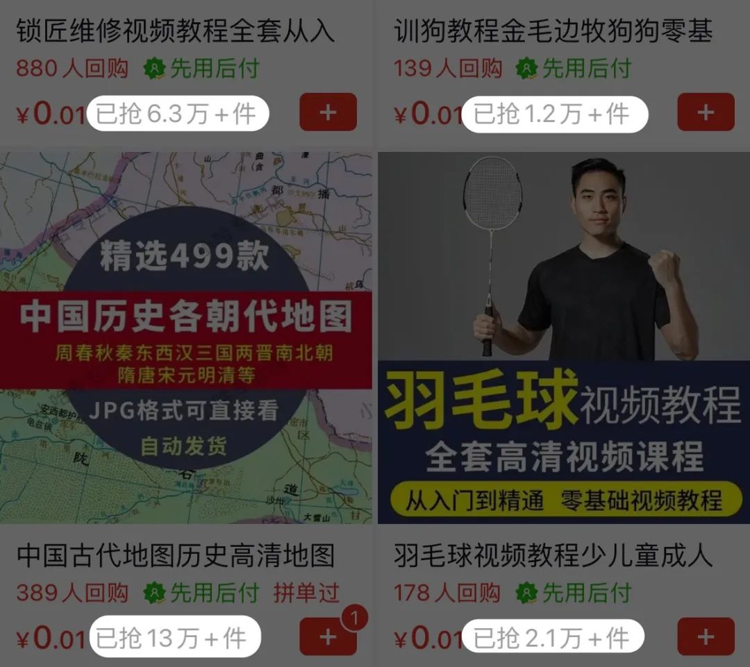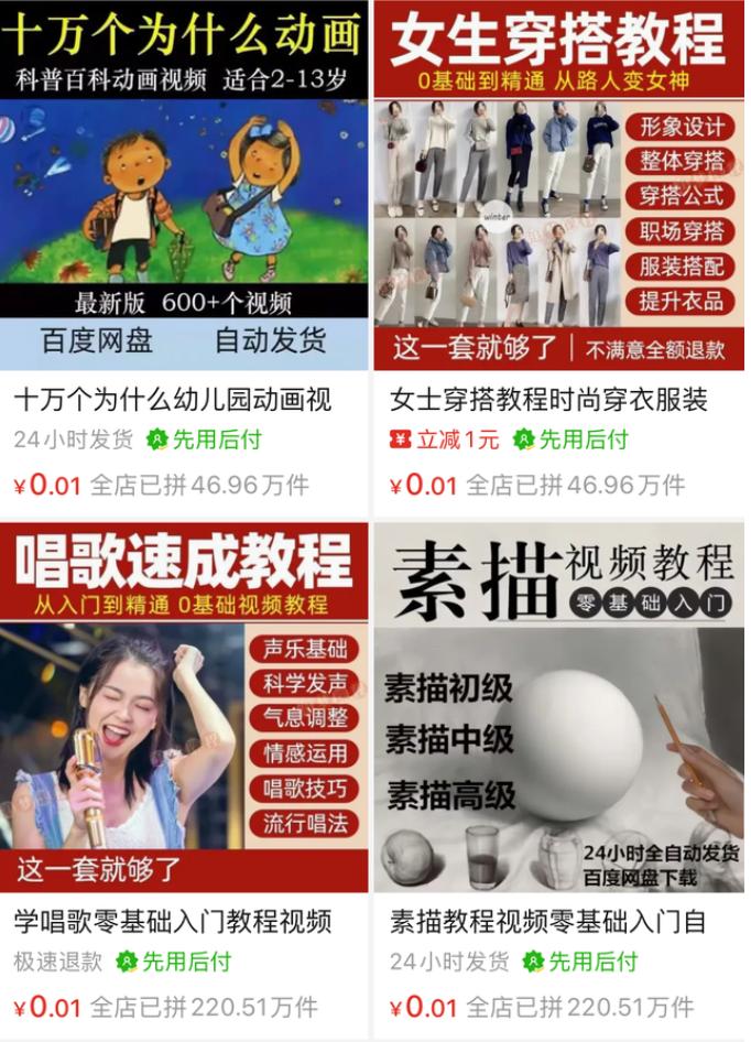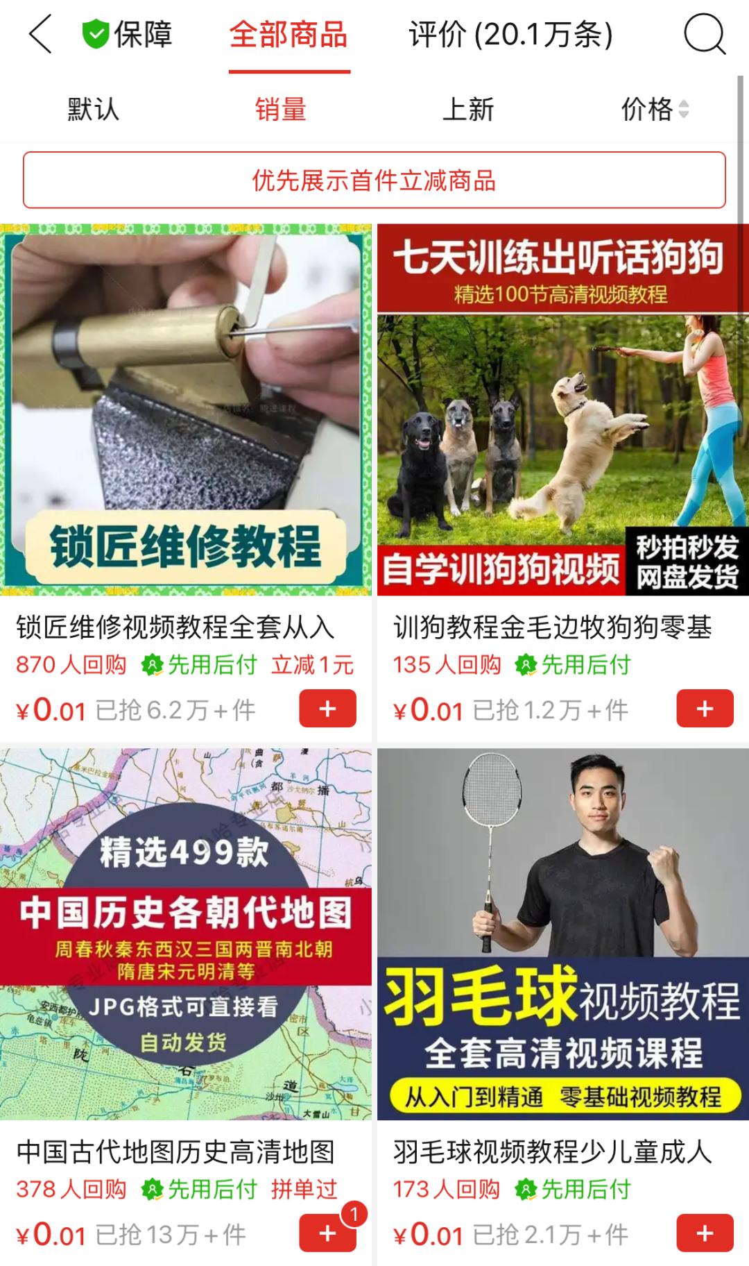 接着你又打开了这家店,首页放眼过去也全是 1 分钱教学,多赚你一分不做。