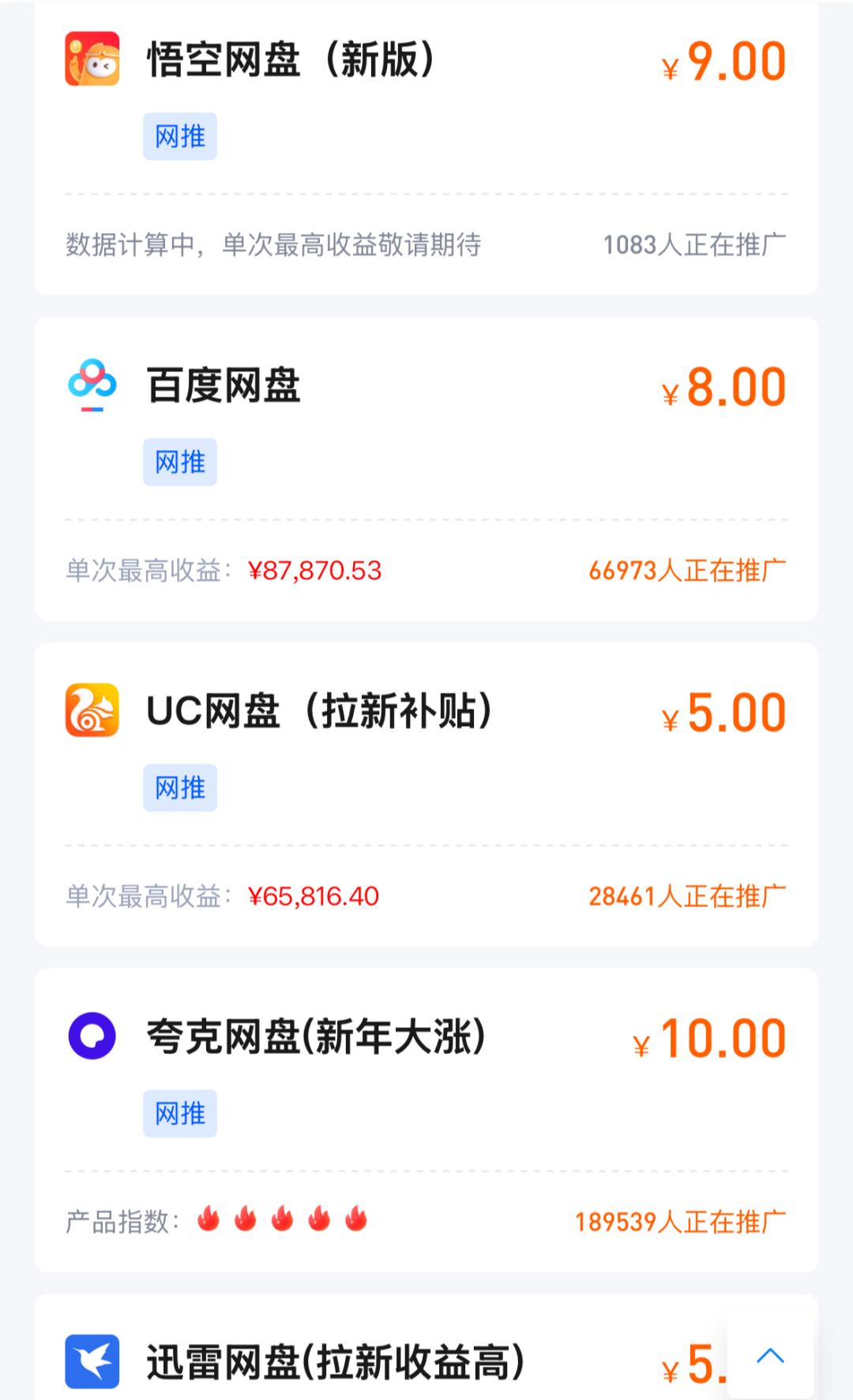 另外,这几块钱的佣金,既然可以出现在推广平台上,自然也是网盘可以接受的拉新成本。