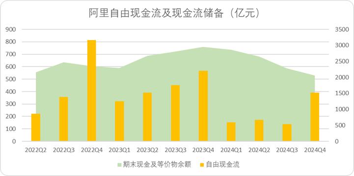 就在年报期间,阿里宣布了资本支出计划,这也符合去年第四季度资本支出的趋势。未来三年,阿里将投资3800亿元用于AI和基础设施建设,阿里自由现金近三年累计3819亿元。